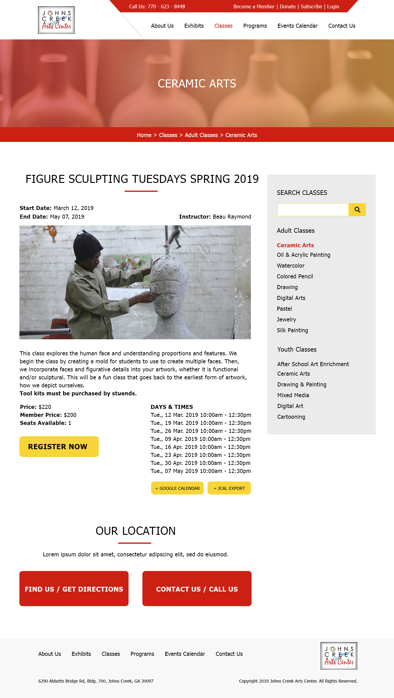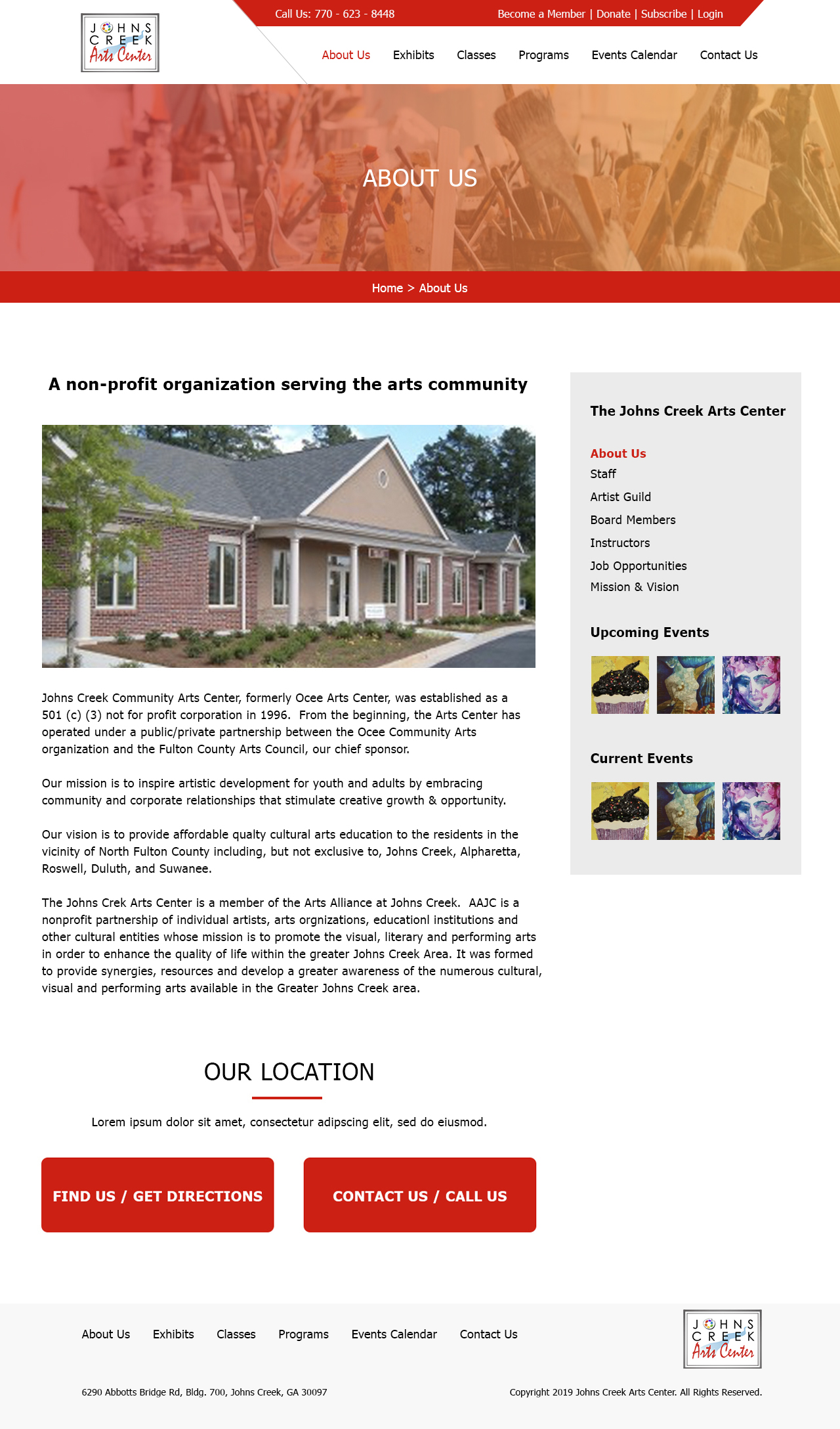 WordPress UX Design: Johns Creek Arts Center